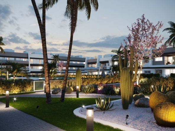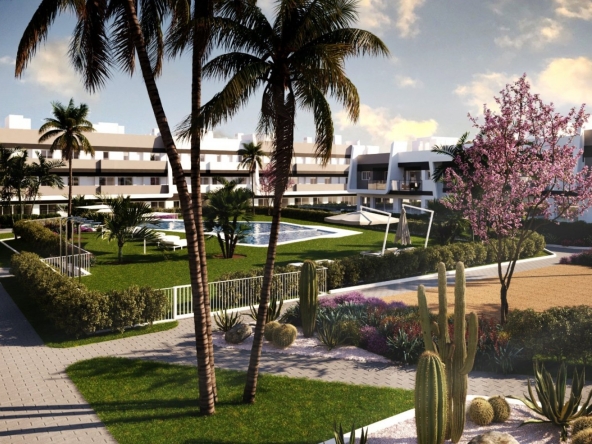 NEW BUILD FLATS IN GRAN ALACANT – NEAR ALICANTE. New construction project of 120 flats in Gran Alacant. Residential complex located very close to the natural park of Clot de Galvany, and a short distance from the beaches of Carabassí. Flats with 2 or 3 bedrooms, 2 bathrooms have a carefully designed distribution and enjoy beautiful views of the communal areas, the natural environment or the sea, and the swimming pool and private gardens on the development. Built to a very high standard, these new flats form a beautiful residential with swimming pools, private underground parking, storage, garden areas, and a children’s play area.