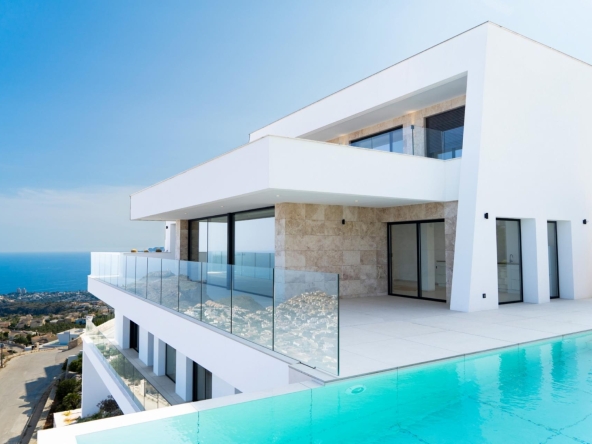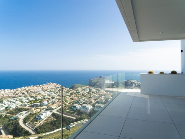 Villa La Nao, a modern style property faithful to the land and its environment. The property is built on a spectacular plot of 1050m², from where you can enjoy unique sea views, from Granadella, through Cap D’Or, to the Peñon de Ifach, without forgetting Ibiza on the days when the horizon is clearer.