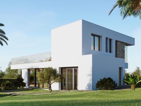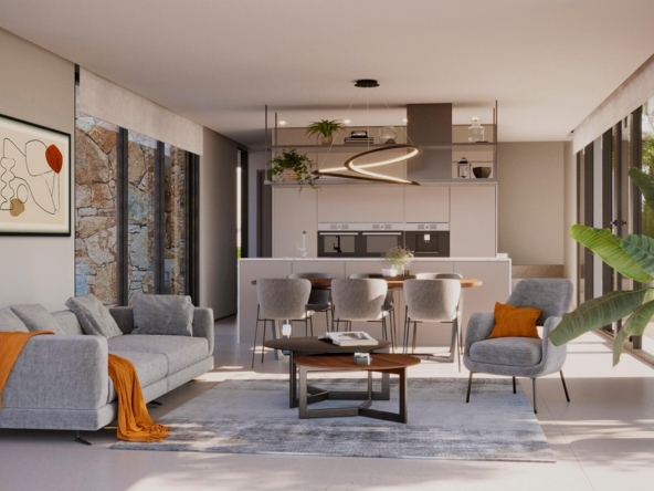 The villa has 3 bedrooms, 2 bathrooms and a guest toilet, an open kitchen connecting to the spacious living and dining room with lots of natural light through the large windows. From here you have direct access to the terrace with private swimming pool.