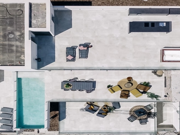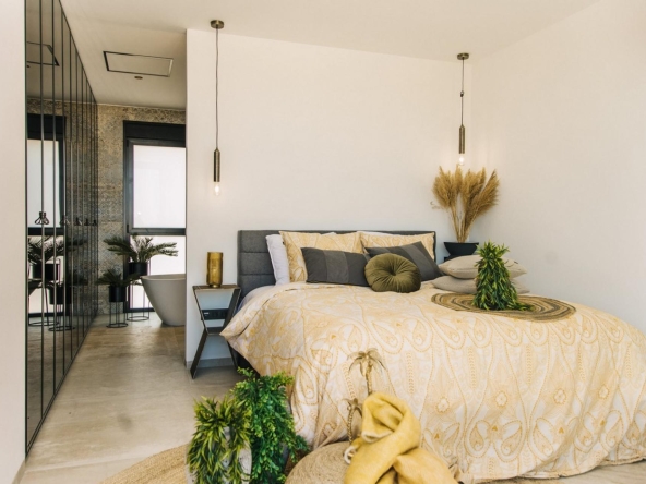 There are 2 types of villas being built. Design villa with views over Guardamar and the sea. 3 ensuite bedrooms with terraces with views over the Sierra del Recorral. From the infinity pool you can enjoy the beautiful view and nature that Rojales has to offer. The natural light on the ground floor ensures that you can also use this space optimally for extra bedrooms, multiple parking spaces or for the hobby room you have always dreamed of!