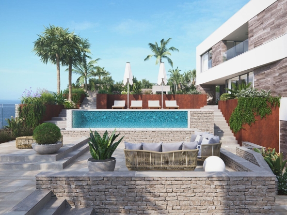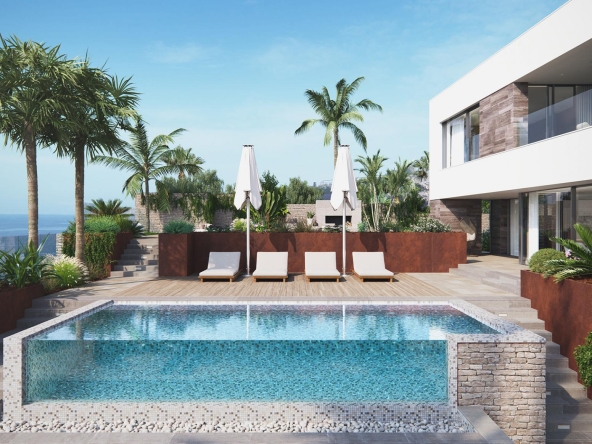 Exclusive independent adaptable villa with panoramic views of the Mediterranean Sea finished with the highest quality materials, and innovative design.