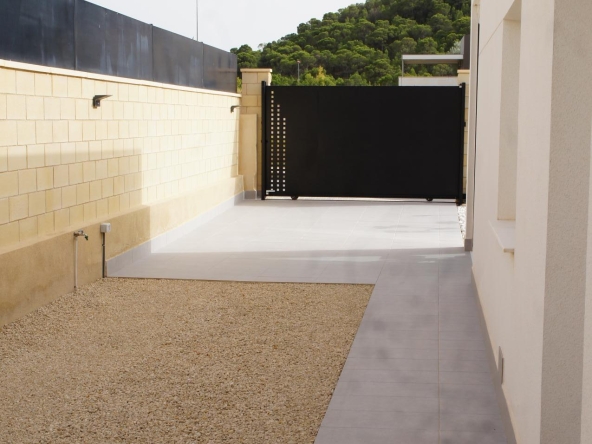 The property sits on a walled and fenced plot of close to six hundred metres and is accessed via a electric driveway gate and a separate pedestrian foot gate.